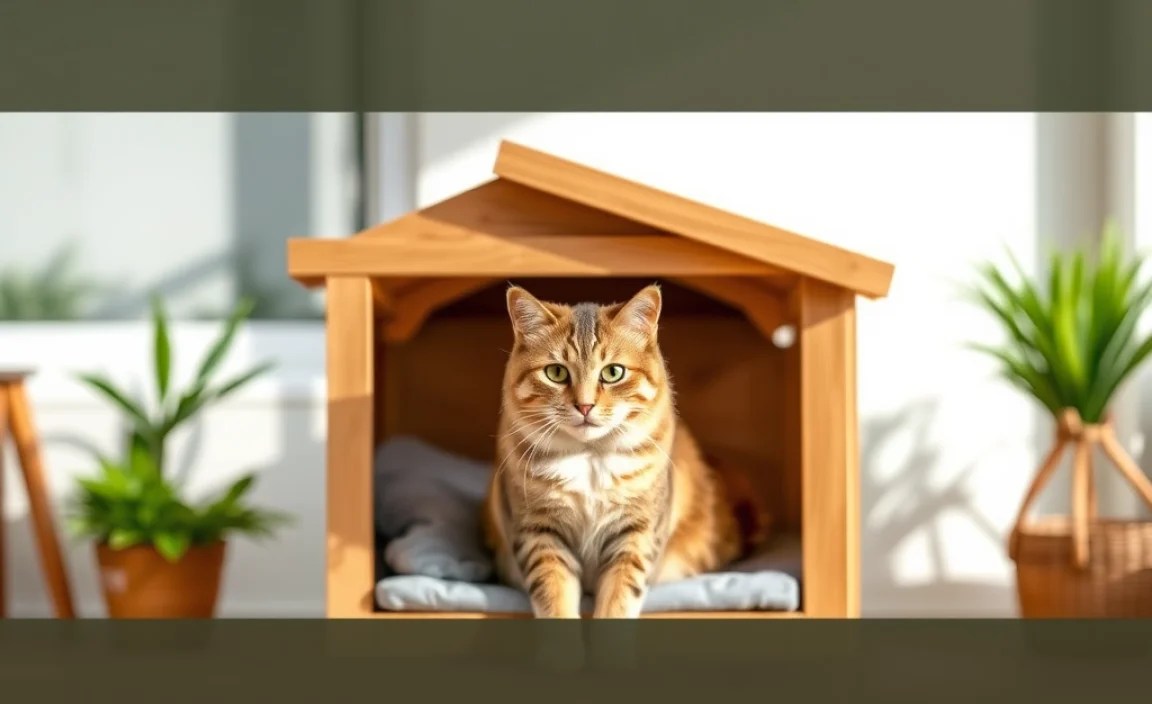 Imagine a tiny house that can stand up to rain, snow, and wind. That’s what a good cat house for outdoors does. These houses are designed to protect cats from the elements. They often have waterproof roofs and insulated walls. This keeps the inside dry and warm, even in bad weather. Some cat houses even have heated pads. These pads provide extra warmth during the winter. The design of the house also helps. A raised floor keeps the cat away from cold, wet ground. Overhanging eaves protect the entrance from rain and snow. Choosing a weather-resistant cat house is important. It ensures your cat stays safe and comfortable no matter the weather. This gives you peace of mind knowing your cat is protected.
