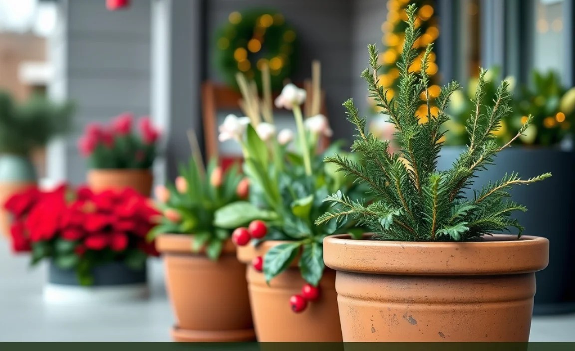 Christmas is a fun time of year. We put up lights and decorate our homes. Have you ever thought about using christmas decorations outdoor flower pots? They can make your yard look festive. Let’s find some cool ways to decorate with flower pots!