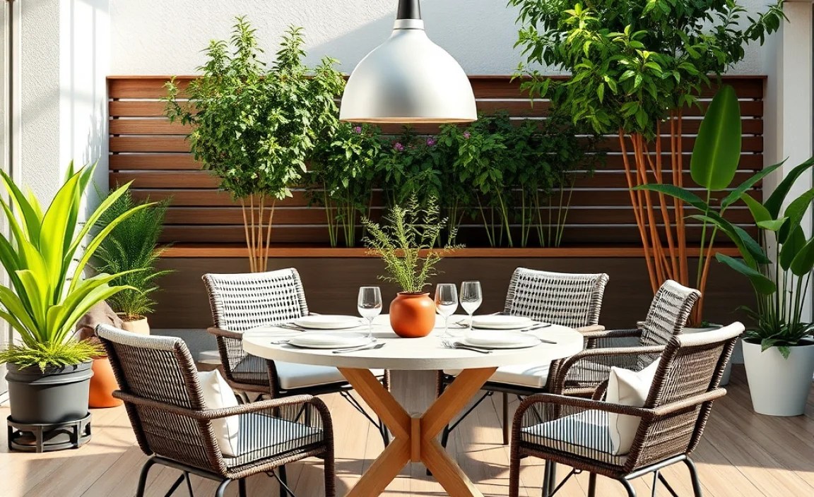 Metal is a strong and durable choice for dining sets for outdoor use. It can stand up to the weather. It doesn’t need much care. Aluminum is a good choice. It is light and doesn’t rust. Steel is also strong, but it can rust. You need to paint it to protect it. Metal can get hot in the sun. Choose chairs with cushions to make them more comfy. Metal sets can look modern and sleek. They can also look classic and traditional. It depends on the style. If you want a set that will last a long time, metal is a good choice.