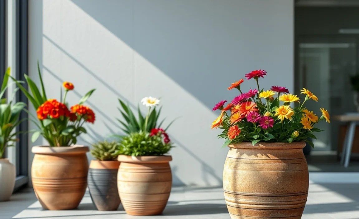 Big pots let you grow lots of different flowers. You can mix colors and sizes. Imagine bright red geraniums next to sunny yellow petunias. What a fun way to add color to your yard! We will explore how to create stunning flower displays.