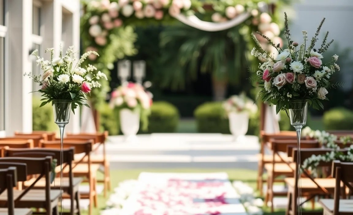 Think about colors and smells. The right flowers create a magical feeling. But how do you choose the best ones? What colors work well together? Let’s learn about planning a perfect flowers outdoor wedding ceremony.