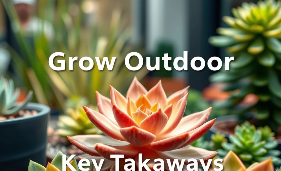 Answer: Succulents are plants that store water in their leaves, stems, or roots. This helps them survive in dry climates. They come in many shapes, sizes, and colors. Some common succulents include echeverias, sedums, and aloes. Succulents are easy to care for. They are a popular choice for gardeners of all levels. Growing outdoor succulents adds beauty to any space. They need lots of sunlight. Make sure the soil drains well. Don’t water them too much. Protect them from freezing temperatures. With proper care, they will thrive. You can enjoy them for many years.