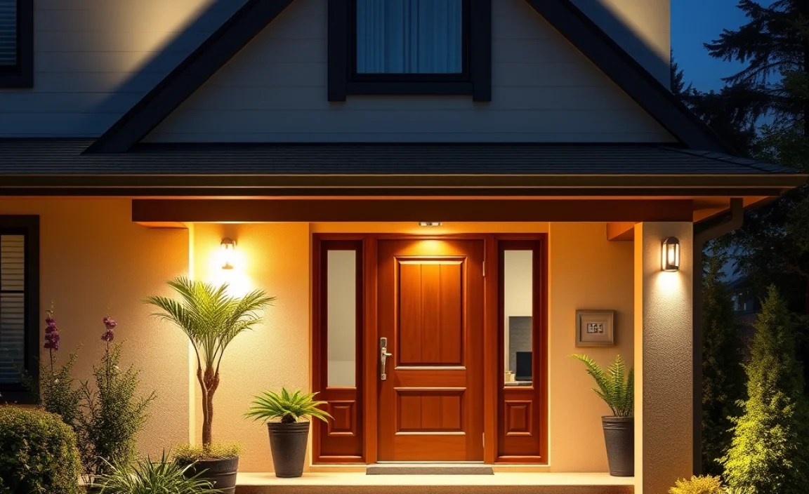 Answer: To make your front door more welcoming, focus on creating a warm and inviting atmosphere. Install sconces on either side of the door to frame it with light. A pendant light hanging above the door can also add a nice touch. Use soft, warm-colored bulbs to create a cozy feel. Consider adding a dimmer switch so you can adjust the brightness. Make sure the area around your front door is well-lit, including the walkway. This helps guests feel safe and welcome. Don’t forget to keep the lights clean and in good working order. Great outdoor lighting ideas for front of house always include a welcoming front door.