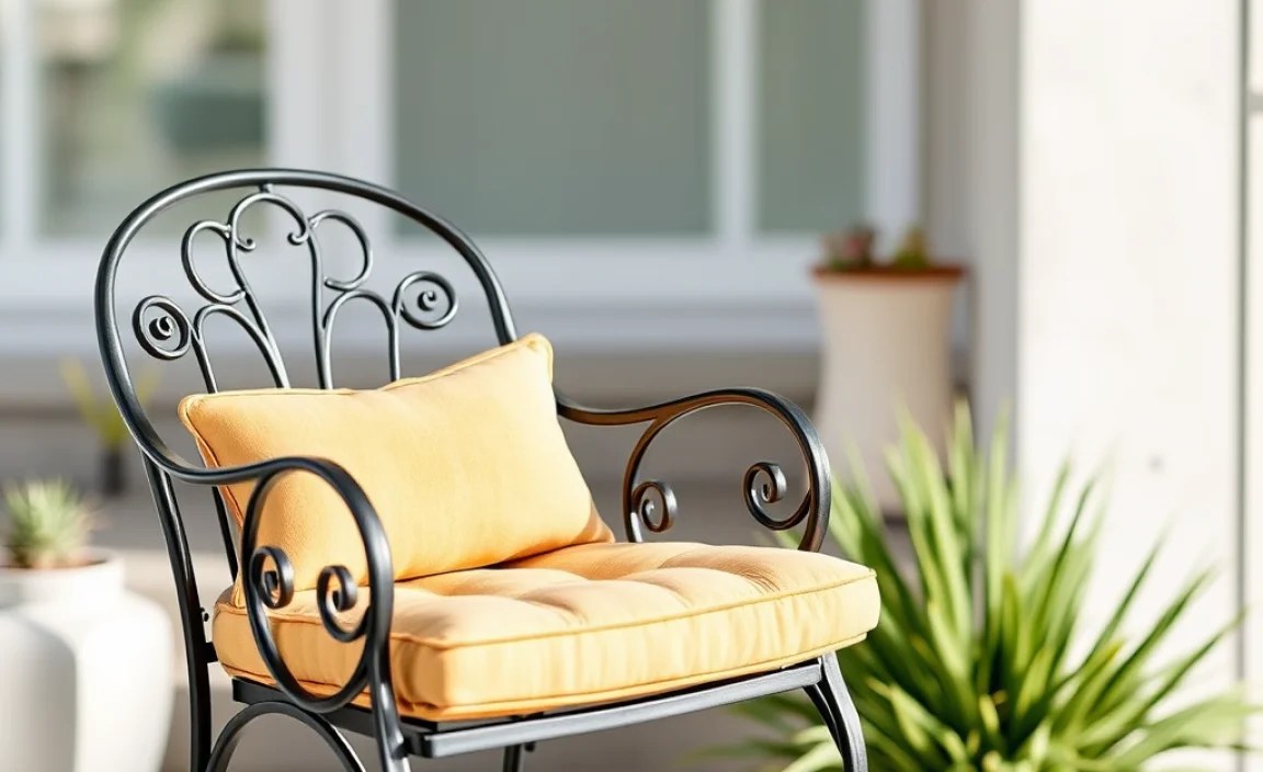 Outdoor seat cushions can transform your wrought iron chairs. They make them more inviting. You want cushions that look great and feel good. Think about color and pattern. What matches your outdoor space? Do you like bright colors or something calm? Consider the fabric too. It needs to handle sun and rain. Look for materials like acrylic or polyester. These fabrics resist fading and mildew. A good cushion makes your chair a favorite spot. It is a place to relax and enjoy the outdoors. Cushions add a personal touch to your patio. They create a cozy and welcoming space for everyone.